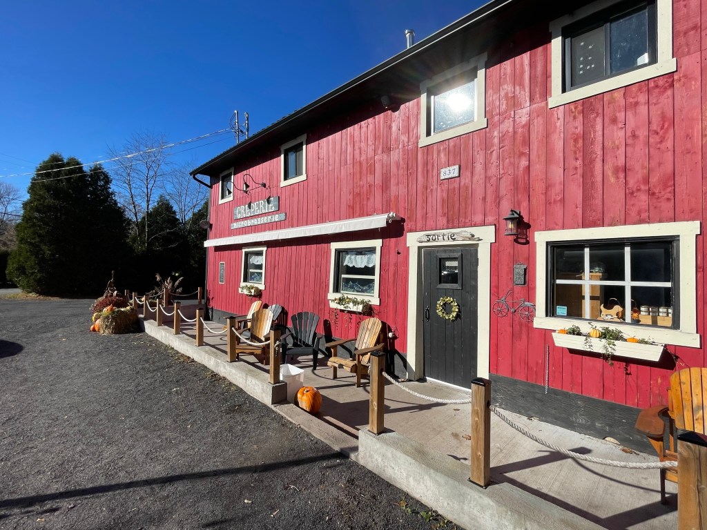 Dans ces rangs parallèles à la route 132, c’est carrément un autre monde qui s’ouvre aux cyclistes : la circulation est rare, les animaux sont présents et les odeurs, envoûtantes. Chaque saison a ses parfums spécifiques et c’est génial d’y rouler tôt, comme tard dans l’année, pour vivre toutes ces différences. En bifurquant sur la route de l’Église, le contraste est évident : on a retrouvé notre route à trois chiffres. L’accotement est large et le focus sur le clocher de Saint-Antoine-de-Tilly me fait accélérer. J’ai hâte d’arriver à mon arrêt gourmand.