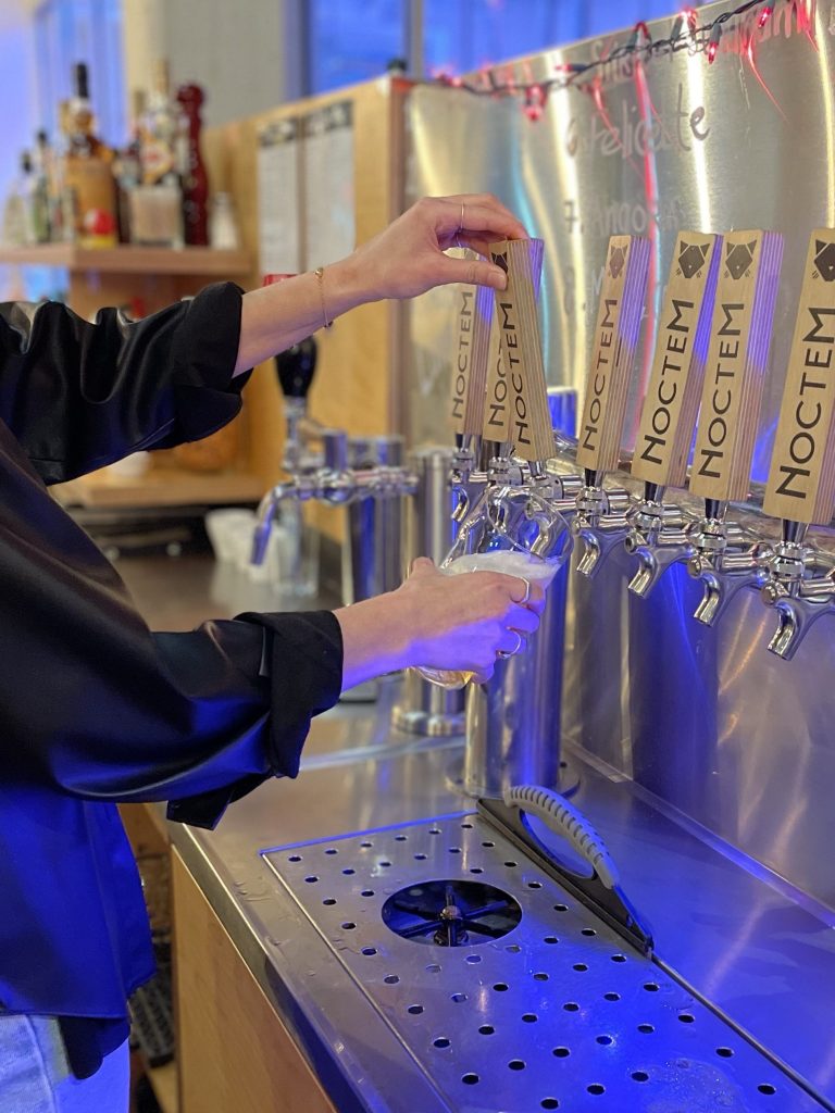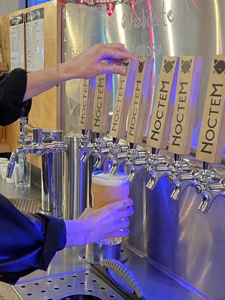 À ma grande surprise, on ne m’a pas parlé d’une IPA, mais plutôt d’une gose (à l’origine une bière allemande, salée et acidulée, avec une petite touche d’épices), la Calaca. Le Noctem a joué beaucoup avec le style pour aboutir à une bière sûre très facile à boire. On y a ajouté des fruits au fil du temps pour imprégner une touche personnelle. Bien évidemment, toutes les recettes qui découlent de la Catnip constituent une gamme de bières vraiment appréciée. Enfin, on est conscient que les amateurs de houblons sont friands de nouveautés alors on s’adapte et on essaie plusieurs nouveaux brassins : des lagers, des marzens, des pilsners, etc.. On n’est pas dupes non plus, la consommation d’alcool ayant diminué et s’étant transformée, le Noctem demeure attentif et brasse souvent en plus petites quantités et navigue dans cette tendance qui, on l’espère s’allégera bientôt.