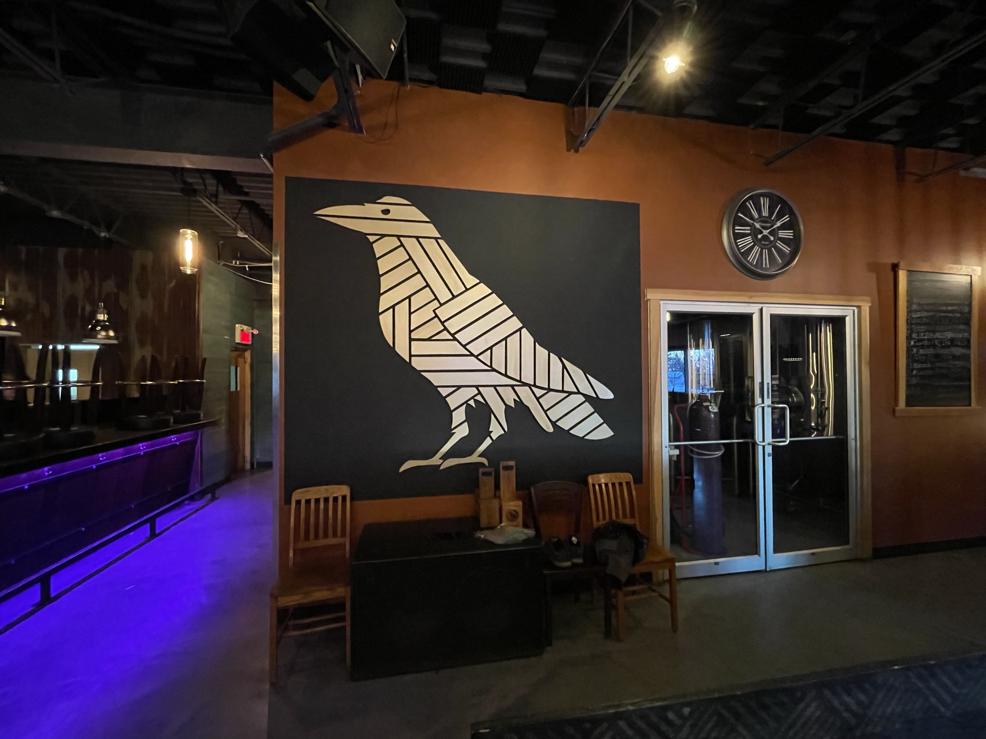 Dès qu’on franchit la porte de la microbrasserie, ce qui saute tout de suite aux yeux, après le corbeau géant, c’est… le four à pizza. Alors, qu’est-ce qui est arrivé en premier? Le four à pizza ou la bière? Telle est la question.