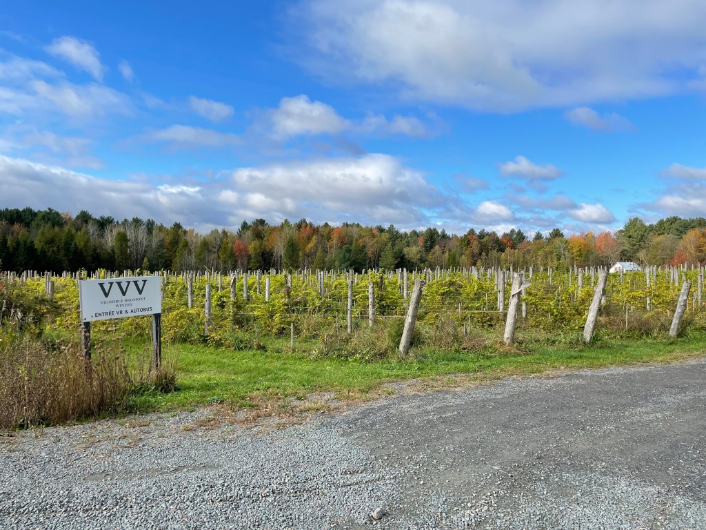 En stationnant à la micro de Cowansville, on peut entrer assez vite dans le vif du sujet et fouler les routes de garnotte des Cantons-de-l’Est comme on les aime : bien compactes et très roulantes. Je me remercie d’avoir pensé à traîner une deuxième paire de gants et d’avoir enfilé mes couvre-chaussures. La magnifique vue sur les vignes soigneusement alignées du vignoble de Bromont me fait oublier que le ciel semble incertain, déprimé, et que les gouttes froides d’octobre ruissellent déjà sur mon casque.