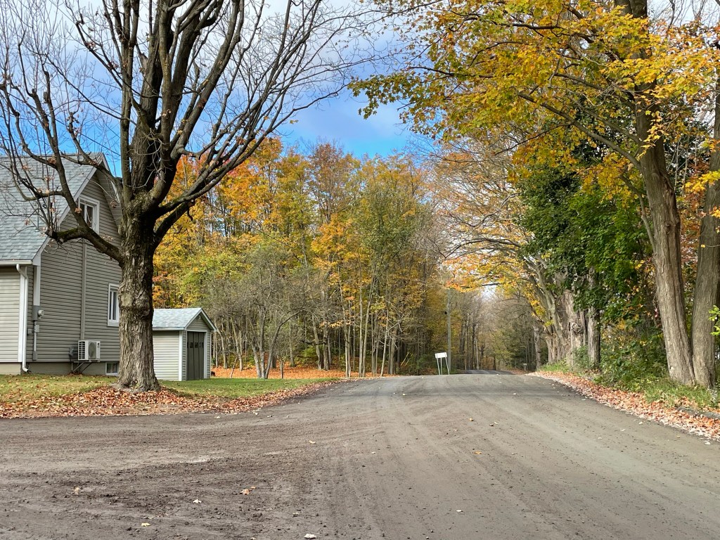 Température humide oblige, je ne prends pas trop mon temps et reprends la route vers le prochain spot. Quel bonheur d’ensuite parcourir les quinze prochaines bornes sur une piste cyclable recouverte d’une dense canopée, longeant le Lac-Brome, me protégeant de la pluie au passage. Les odeurs sont riches et s’imposent dans mes narines : les effluves sucrées des feuilles mortes, combinées à celles du sapinage peaufinent cette atmosphère parfaite automnale.