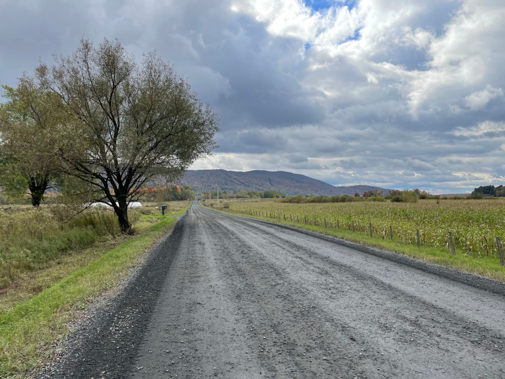 Dès que j’arrive à Bromont, je suis vite sortie de mes rêveries, comme je dois traficoté un peu pour traverser les artères principales. Heureusement, cela n’était que de courte durée et je retrouve ma quiétude tant aimée quelques kilomètres plus loin. La Fromagerie Gourmande de Bromont, ayant aussi le double rôle de casse-croûte, me fait de l’oeil, mais je résiste et j’entame l’ascension du mont Shefford. J’y reconnais la non lointaine campagne vermontoise que j’ai visitée quelques mois auparavant lors d’un voyage de bikepacking, dont je suis déjà nostalgique.