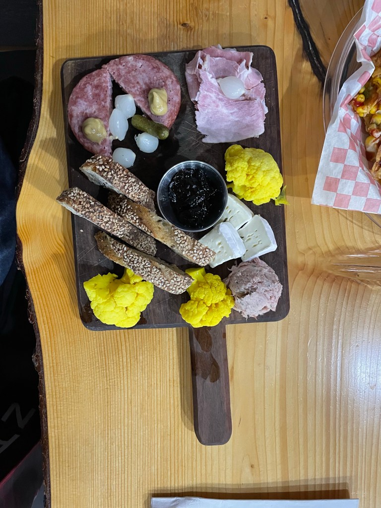 Ayant bientôt atteint mes limites pour me réchauffer sous ce crachin d’octobre, j’entreprends les derniers kilomètres pour rallier le point de départ, vers la microbrasserie au mignon logo de hibou : le Sage Brasseur. Je nettoie mon vélo et mon visage (je me sens un peu comme Magalie Rochette… ok, juste un peu, dis-je!), puis entre me ravitailler adéquatement. Je flanche pour une planche de charcuteries, légumes marinés et fromages. Divin! Le tout accompagné d’une rousse bien maltée, avec une finale rappelant le sucre d’orge, comme je les aime.