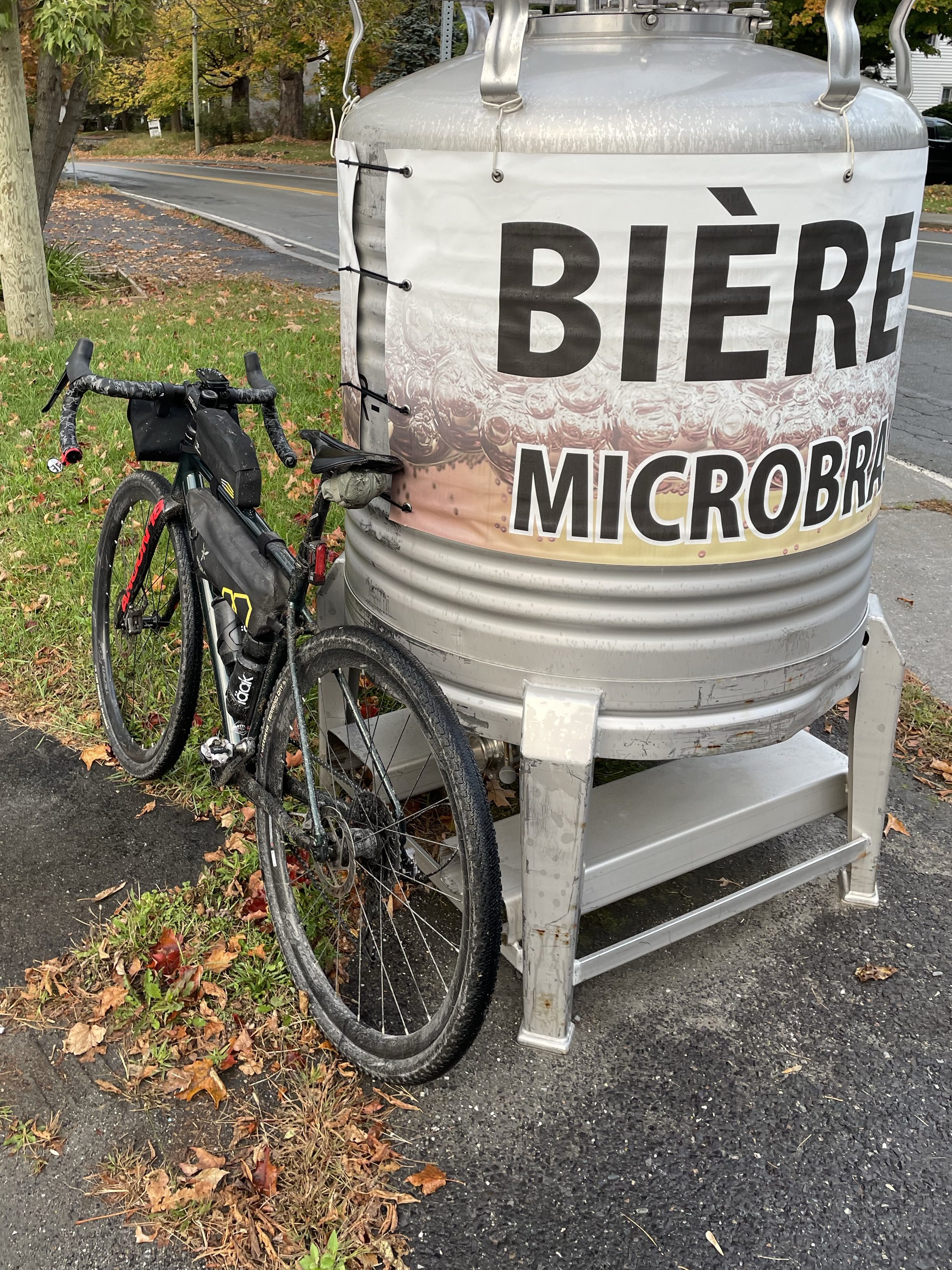 Même si à la base, j’avais choisi de venir rouler en Estrie parce qu’on annonçait de la pluie à Québec, mais que finalement, ce fut l’inverse, j’ai vraiment aimé l’atmosphère enveloppante de cette sortie houblonnée. Je me suis fait doucher à plusieurs reprises, alors que les gens de Québec ont pu peaufiner leurs ultimes démarcations de bronzage, mais bon… ils n’ont pas vu d’aussi beaux tableaux d’automne! Tant pis pour eux… ou pas?